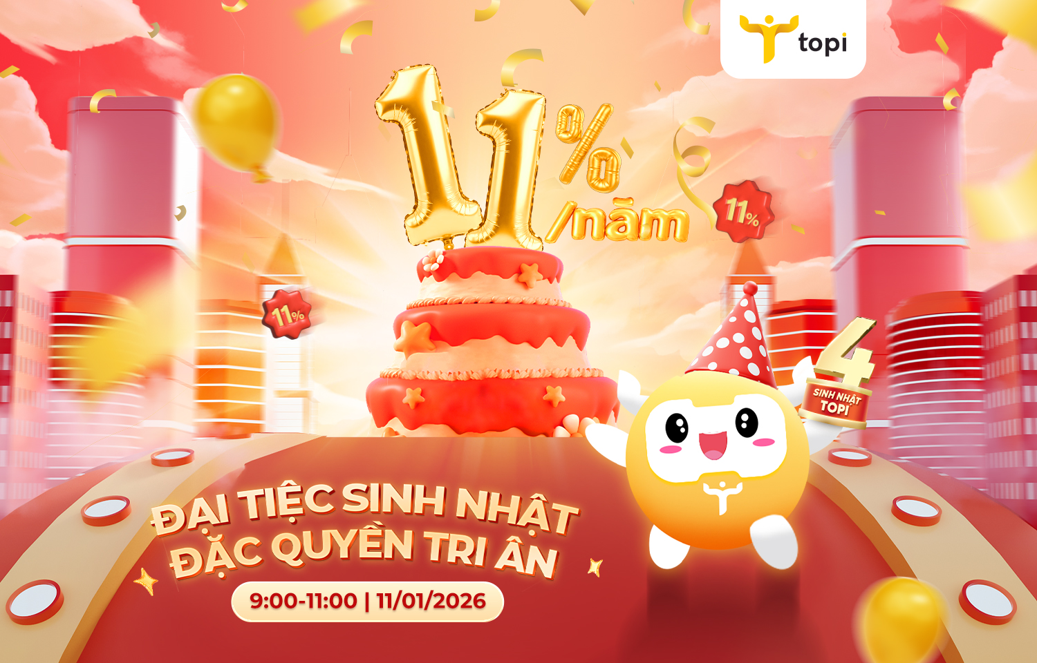 Sản phẩm ưu đãi: Mừng sinh nhật TOPI - Ưu đãi 11% dành cho tất cả khách hàng TOPI.
