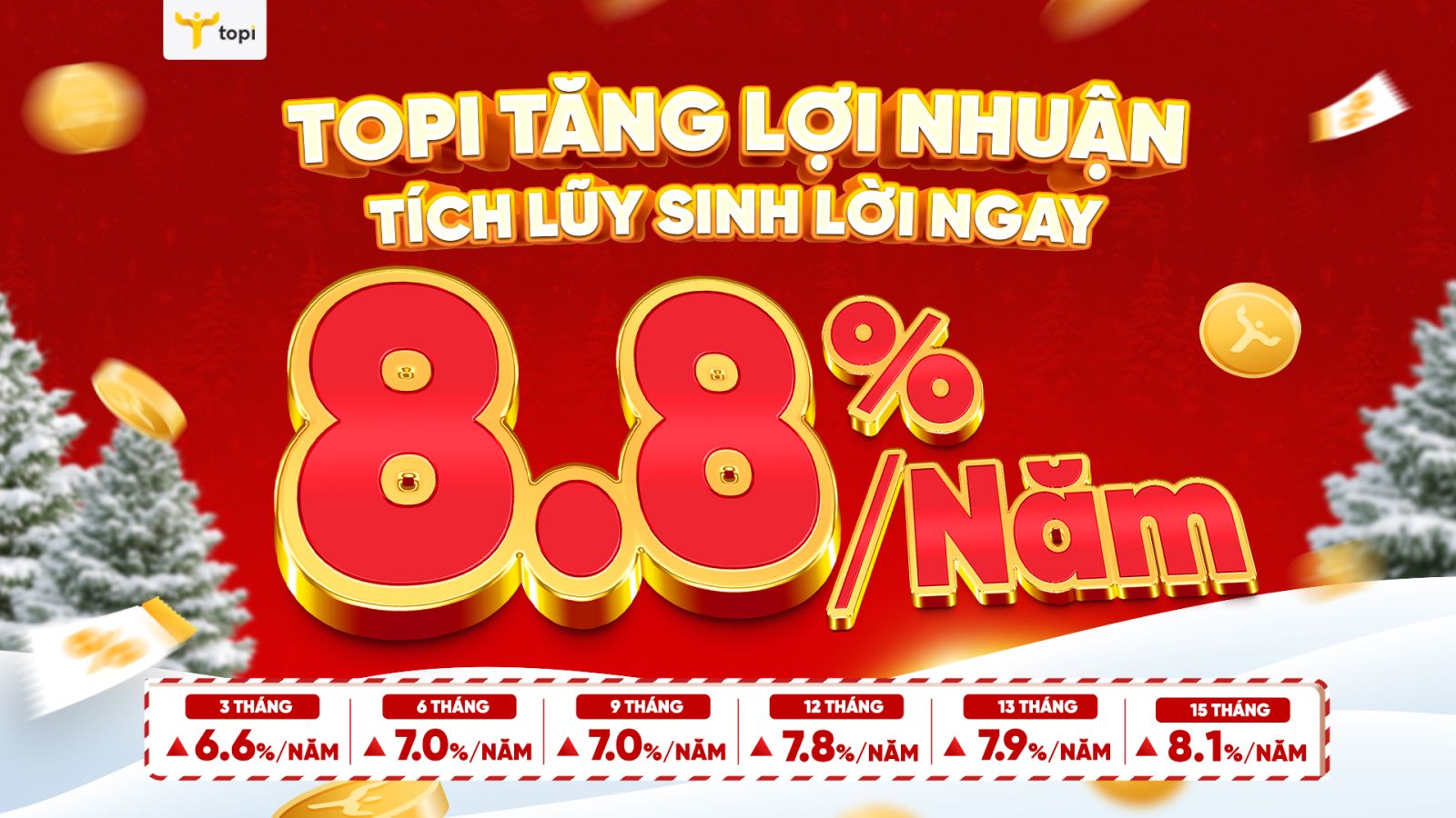 Ngoài ra, TOPI tặng bạn thêm lợi nhuận vào hai sản phẩm tích lũy mới 13 tháng và 15 tháng với lợi nhuận hết ý, sinh lời thả ga: