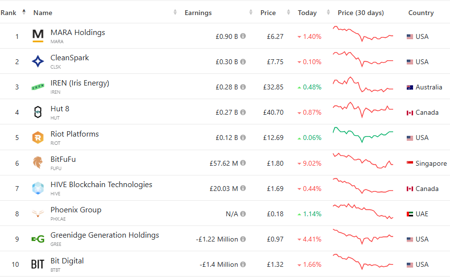 Một số nhóm đào Bitcoin phổ biến xếp theo doanh thu