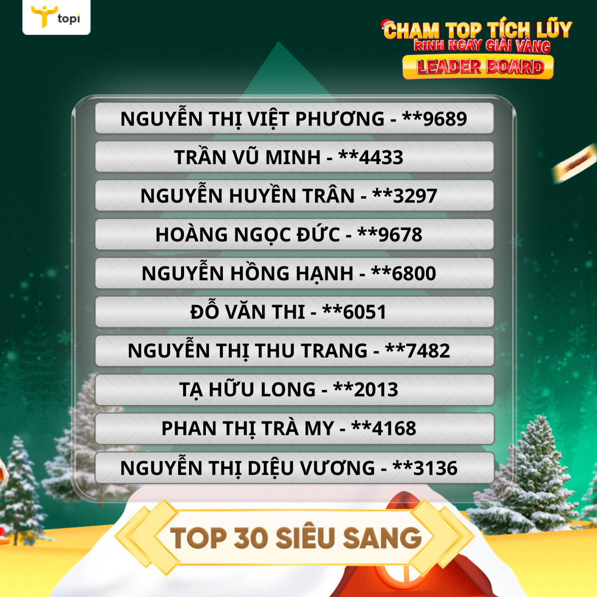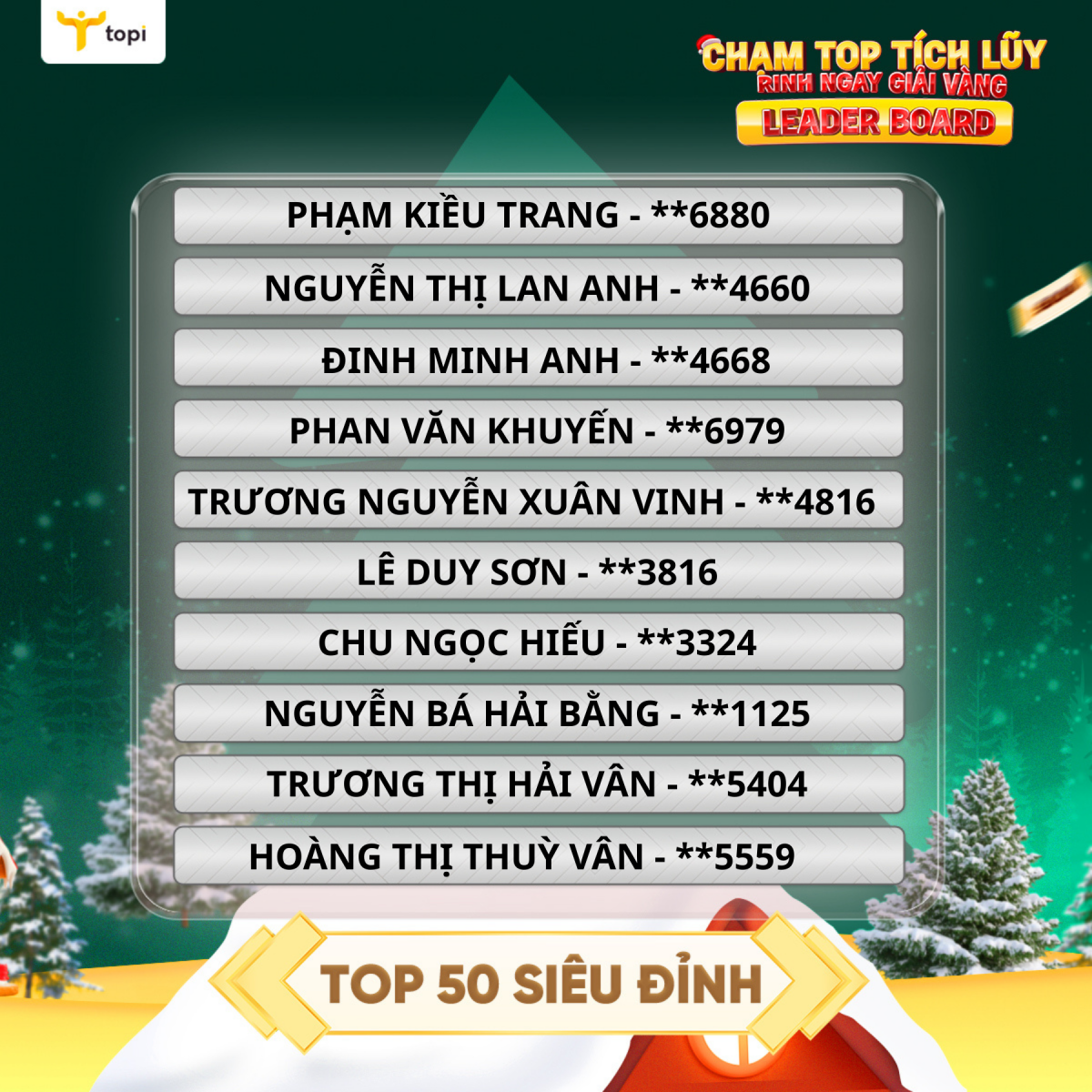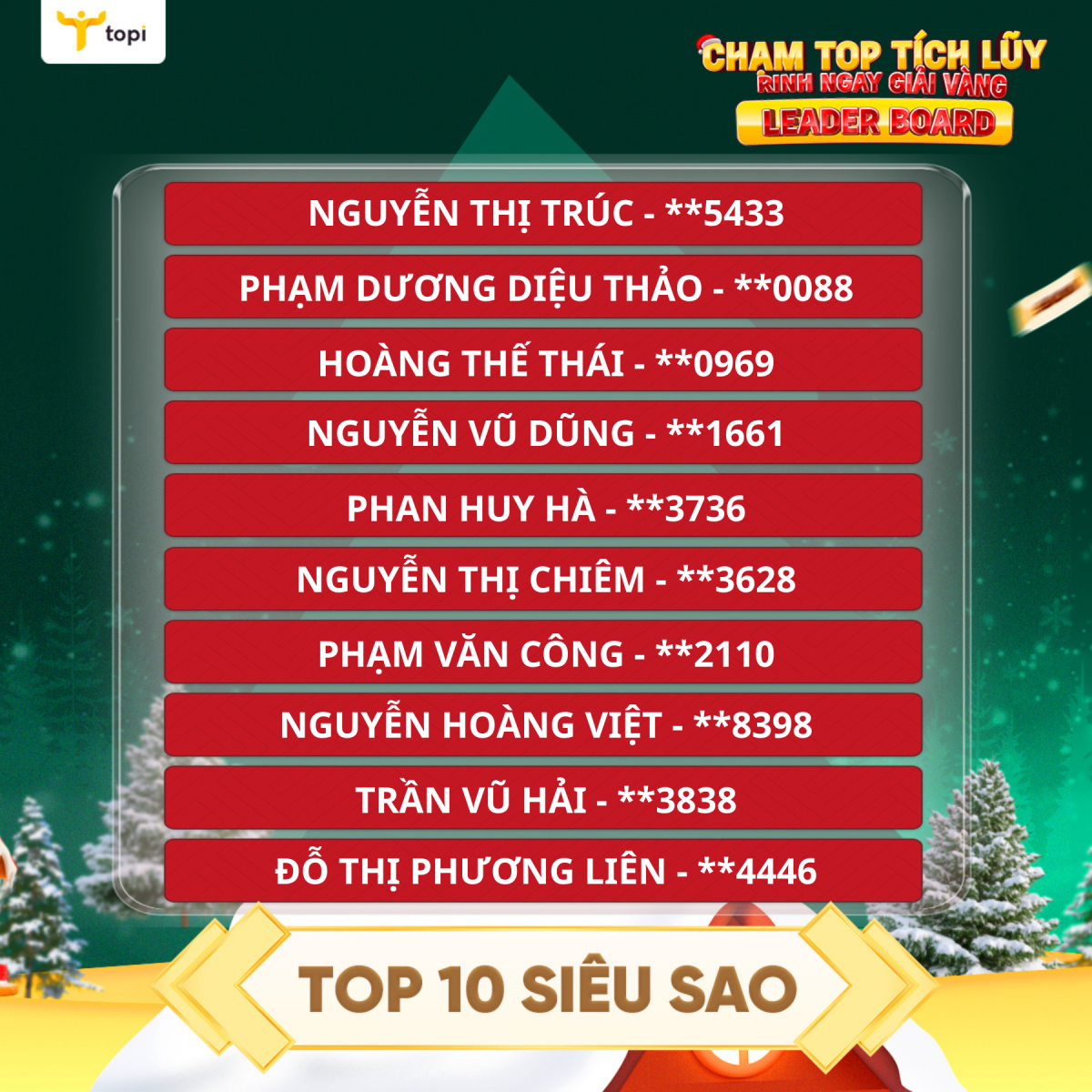 Hãy nhanh tay tích lũy ngay hôm nay để nhận tới 1 chỉ vàng cùng TOPI bạn nha!