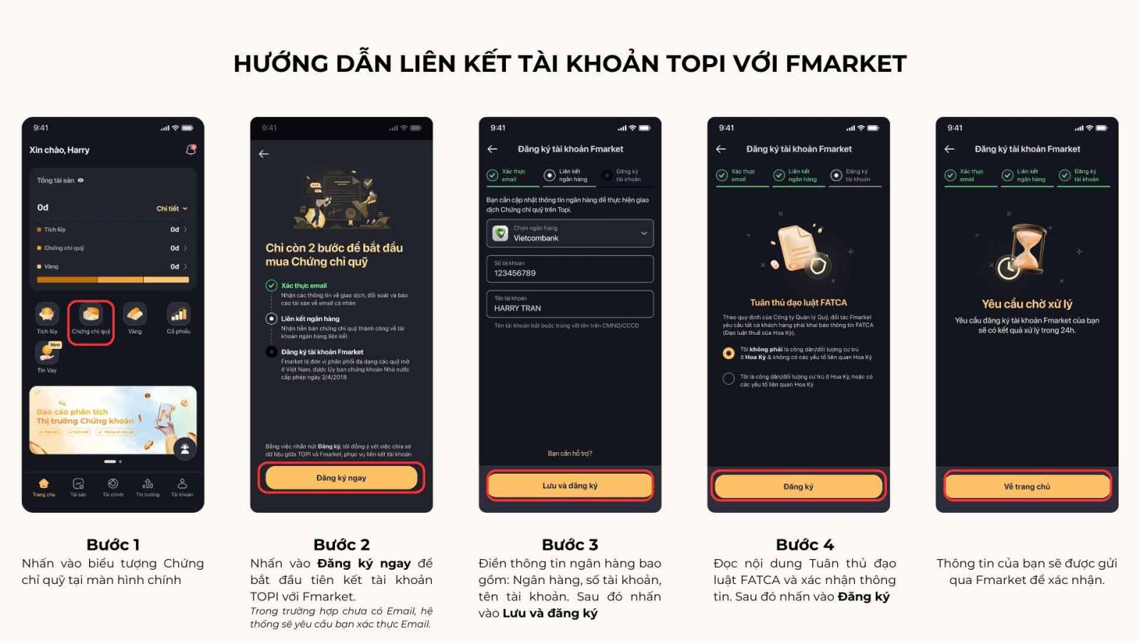 Với mong muốn giúp khách hàng quản lý tài sản tập trung trên một nền tảng và trải nghiệm tối đa các tiện ích mua chứng chỉ quỹ trên TOPI, kể từ ngày 05/05/2026, TOPI sẽ tiến hành tích hợp nền tảng Fmarket ngay trong ứng dụng, giúp khách hàng có thể mua – bán chứng chỉ quỹ nhanh chóng, an toàn và không gián đoạn trải nghiệm.