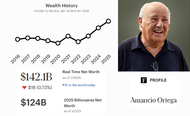 Dù đã nhường lại ghế chủ tịch Inditex cho con gái Marta Ortega Pérez vào năm 2022, Amancio Ortega vẫn sở hữu khoảng 60% cổ phần công ty. Điểm khác biệt của ông so với các tỷ phú khác là cách sử dụng khoản cổ tức hơn 400 triệu USD hàng năm. Ông tái đầu tư số tiền khổng lồ này vào danh mục bất động sản cao cấp tại Châu Âu và Bắc Mỹ. Hiện tại, những gã khổng lồ như Apple, Amazon và Walmart đều đang là khách thuê trong các tòa nhà thuộc sở hữu của ông.
