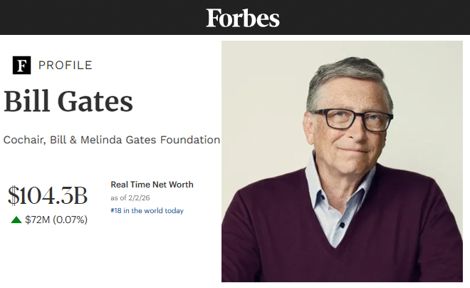 Giữ vị trí thứ 7 là tỉ phú Bill Gate. Ông là người giàu thứ 18 thế giới với khối tài sản 104,3 tỉ USD. William Henry Gates III là một nam doanh nhân, nhà từ thiện kiêm tác giả người Mỹ, người đồng sáng lập và là chủ tịch tập đoàn Microsoft trứ danh. Ông luôn có mặt trong danh sách những người giàu có nhất thế giới, thường xếp hạng từ vị trí thứ 1 đến thứ 3 với khối tài sản hàng trăm tỷ đô la Mỹ.