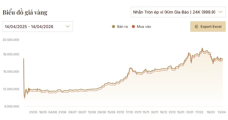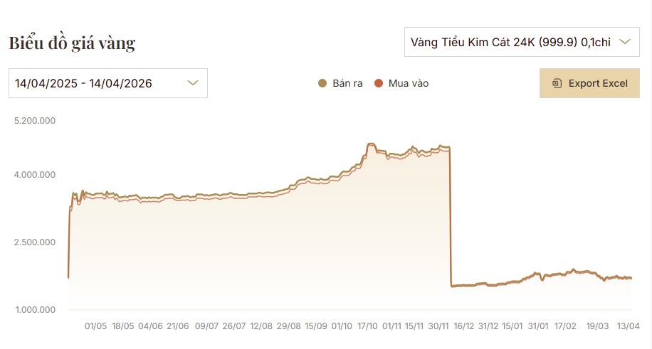 Biểu đồ giá vàng Tiểu Kim Cát